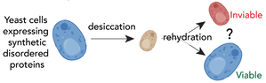 IDPs are often involved in forming biomolecular condensates – non-stoichiometric cellular assemblies. Many condensates play key roles in organismal development and maintenance (e.g., nucleolus, nuclear speckles, P bodies). Given condensates are highly sensitive to changes in their solution environment, changes in water availability can fundamentally alter condensate properties. Despite this, we lack a comprehensive understanding of how condensates change as a function of water. Condensates formed by proteins with different protein sequences have fundamentally distinct properties. As such, a general understanding of condensate water-responsiveness must consider condensates formed from intrinsically disordered regions (IDRs) with different sequence-encoded physicochemical properties based on their amino acid sequence (which we define as sequence chemistry). To address this we will construct synthetic, chemically tunable condensates. We will assess how condensate number, size, material state, and ability to recruit other proteins are altered by changing the chemical environment inside the condensate based on the variable IDR.