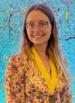 Kara Hunter received the award for her poster titled ‘Designing Disordered Proteins for Desiccation Protection.’ In this project, Kara and her collaborators developed a method to parse how the sequence of desiccation-related IDPs dictate function. They used a naturally derived and synthetic library created by GOOSE, a python package, expressed in yeast. Using Next-Generation Sequencing (NGS), they can see what sequences are most abundant post desiccation and confer greater protection.​